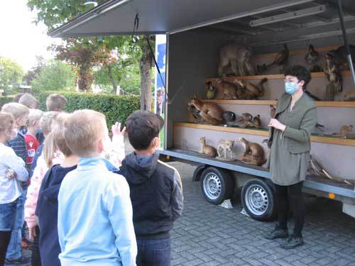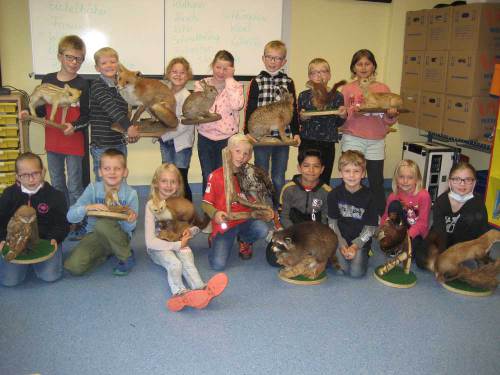 gefahren. Im Anhänger viele, viele präparierte Waldtiere, die die Kinder wirklich untersuchen und in die Hand nehmen durften.
